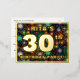 The front of this joyful and vibrant thirtieth birthday party/celebration foil invitation postcard design features an editable name, a large number “30th”, the message “BIRTHDAY PARTY!”, and a border. The background of the front has a bold, colourful bursting celebratory fireworks-inspired pattern. The back features personalized details about the event, such as the date, time, location, and any other important information. Editable invitations like these might be a fun way to invite guests/attendees to a birthday gathering/party being held to honour somebody’s 30th birthday. [~Z0000609]
