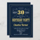 Elegant navy blue, gold and white retro design with script font. Cheers to 30 years! Message me if you need further customization.