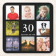 A coaster for a 30th birthday party for a guy, celebrating his life with a collage of 8 of your own photos. Templates for the age 30 and a date. Date of birth or the date of the party. White coloured letters. Black background.