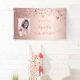A banner for a girly and glamourous 30th birthday party. A faux rose gold metallic looking background with shiny and glittery dripping stars. Personalize and add your own photo, a name written in dark rose gold with a large modern hand lettered style script with swashes. To keep the swashes only delete the sample name, leave the spaces or emoji's in front and after the name. Templates for a date and age 30.