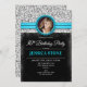 30th Birthday Photo - Silver Black Aqua Blue Invitation