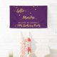 Elegant and modern banner for a 30th birthday party. Girly and feminine purple backdrop and faux gold text written with a trendy hand-lettered style script: hello thirty. With golden dots as decor. Templates for name and the text: Welcome to …. golden letters. You can change the background colour to match your theme. Click customize and then "select a background colour" on your right.