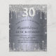 A modern, stylish and glamourous invitation for a 30th birthday party. A faux silver looking background, decorated with glitter dust. Personalize and add your name and party details. Number 30 is written with a balloon style font, script.