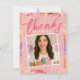 Send your gratitude in style with this vibrant thank you card from the Sunset Vibes collection. Featuring a bold pink, coral, and purple fan-inspired background and space for a personalized photo, this card is the perfect follow-up to a fun and fabulous milestone birthday celebration.