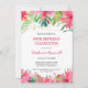 These tropical 30th birthday party invitations feature watercolor design of tropical flowers, foliage and string lights. Personalize them with your own text.