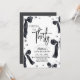 Modern stylish birthday party invitation black watercolor bow and modern script. Classy and elegant, simple and modern invitation.