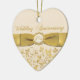 This ceramic heart shaped ivory and gold floral 30th wedding anniversary Christmas ornament has a gold PRINTED ribbon and bow with an ivory and gold PRINTED medallion on it. It would make a lovely keepsake for the couple celebrating 30 years together. The text is customizable. If you need help customizing it, please email niteowlstudio@gmail.com.