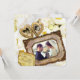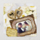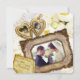 Create your own commemorative invite with this beautiful design featuring an antique gold, heart-shaped locket for your individual photos, and a gorgeous baroque picture frame for your couple or group photo. A vintage scroll paper holds your custom names and event. Replace the sample photos and text with your own for a personalized design. Perfect for wedding anniversary celebrations.