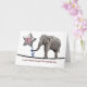 An elephant balanced on a tightrope carrying a birthday balloon.