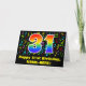 This happy, exciting, and colourful birthday themed greeting card design features a large number "31" with a rainbow spectrum gradient inspired pattern, along with the message "Happy 31st Birthday,", and a custom recipient name. The front also has a colourful music notes and symbols pattern. The inside features a custom birthday greeting message, or could perhaps be cleared and left blank if a message is to be written by hand instead. An editable birthday greeting card like this might be used to acknowledge a music composer’s, a musician’s, a singer’s, or somebody else’s thirty-first birthday. [~Z0000426]