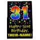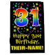 This vibrant, exciting, and fun birthday-themed gift bag design features a large number "31" with a rainbow spectrum gradient inspired pattern, along with the message "Happy 31st Birthday,", and a custom recipient name. It also has a colourful background pattern featuring variously-sized star shapes. A gift bag like this might be used when giving a gift or present in honour of somebody’s thirty first birthday. [~Z0000510]