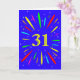 An explosive 31st birthday card! What a wonderful way to send birthday greetings. The number 31 in bright yellow with an explosion of bright colours and stars.