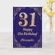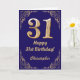 31st Birthday Navy Blue and Gold Glitter Frame Card