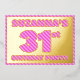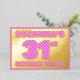 The front of this bold and fun thirty-first birthday party/celebration foil announcement card features an editable name, a large number “31st”, the message “BIRTHDAY PARTY!”, and a border, all featuring a feminine dark pink and light pink lines pattern. The back features personalized details about the event, such as the date, time, location/venue, and any other relevant information. Customized invitations like these might be used to invite guests/attendees to a birthday gathering/party being held to honour somebody’s 31st birthday. [~Z0000597]