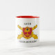 320TH FIELD ARTILLERY MUG WITH DUI AND BRANCH INSIGNIA DESIGN.