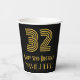 This vintage appearance and 1920s-1930s style inspired birthday-themed paper cup design features a large art deco inspired style number “32”, plus the birthday greeting message “Happy 32nd Birthday,” and a customizable name. It also has a black-coloured background. Birthday themed paper cups like this might be fun to use at a party being held for somebody who is celebrating their 32nd birthday. [~Z0000546]