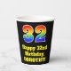 This fun and colourful birthday themed paper cup design features a large number “32” with a rainbow spectrum gradient inspired pattern, along with the message “Happy 32nd Birthday,”, and an editable name. It also has a black-coloured background. Vibrant, colourful paper cups like this might be fun to use at a birthday celebration being held to celebrate somebody’s thirty second birthday. [~Z0000537]