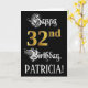 32nd Birthday — Fancy Script; Faux Gold Look; Name Card