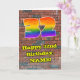 This vibrant and fun urban graffiti and street art themed birthday greeting card design features a large number “32” having a multicolored rainbow spectrum gradient inspired pattern. It also features the message “Happy 32nd Birthday,”, and an editable name. The background of the front has a brick wall pattern. The inside features a custom birthday greeting message, or could perhaps be cleared and left blank if a message is to be written by hand instead. A vibrant, editable birthday greeting card like this might be a fun way to send a birthday greeting message to somebody who is celebrating their thirty-second birthday. [~Z0000586]