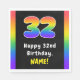 This exciting and eye-catching birthday-themed paper napkin design features the number “32“ with a multicolored rainbow spectrum inspired gradient pattern, along with the message “Happy 32nd Birthday,”, and a custom recipient name. Vibrant birthday themed paper napkins like these might be used at a birthday party celebrating somebody’s thirty second birthday. [~Z0000629]