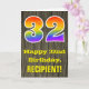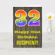 32nd Birthday: Rustic Faux Wood Look, Rainbow "32" Card