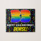 This eye-catching and exciting birthday jigsaw puzzle design features a large number “33” having a multicolored rainbow spectrum inspired gradient pattern. It also features the message “HAPPY 33rd BIRTHDAY,”, and a customizable recipient name. The background has a fun, colourful star shapes pattern. A cheerful, personalized birthday puzzle like this might be a fun way to send a birthday greeting message to somebody who is celebrating their thirty-third birthday. [~Z0000607]