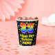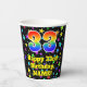 This exciting and fun birthday themed paper cup design features a large number “33” with a rainbow spectrum gradient inspired pattern, along with the message “Happy 33rd Birthday,”, and a personalized name. The background features a vibrant and colourful pattern having many star shapes with different sizes and colours. Vibrant, colourful paper cups like this might be fun to have at a birthday party/celebration being held to celebrate somebody’s thirty third birthday. [~Z0000540]