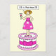 A cartoon lady standing on a large cake, wearing a pink dress and holding a cocktail , saying '33 is the new 23'.