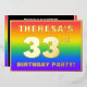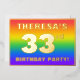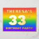 The front of this exciting thirty-third birthday party foil invitation card design features an editable name, a large number “33rd”, the message “BIRTHDAY PARTY!”, and a border. The background of the front features a joyful, multicolored, rainbow spectrum inspired gradient pattern. The back features personalized details about the event, such as the date, time, place/venue, and any other information that may be important. Customized invitations like these might be a fun way to invite guests/attendees to a birthday gathering being held to honour somebody’s 33rd birthday. [~Z0000599]