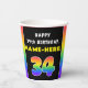 34th Birthday: Colourful Rainbow # 34, Custom Name Paper Cups