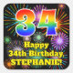 34th Birthday: Fun Fireworks Look, Rainbow # 34 Square Sticker