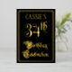 The front of this fancy and luxurious foil thirty-fourth birthday party/celebration invitation design features the message “34th Birthday Celebration” in opulent script-style text. It also has a personalized name. The background of the front is coloured black by default (although it can be customized to a different colour). The back features personalized details about the event, such as the date, time, location, and any other relevant information. Elegant, opulent, customized invitations like these might be used to invite guests to a birthday party/celebration being held in celebration of somebody’s thirty fourth birthday. [~Z0000589]