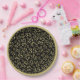 This cool design is a black and gold random number pattern with the milestone number 35 repeated in varied sizes and angles. The design is trimmed with a gold ring around the rim.
