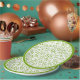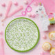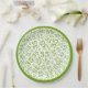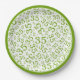 This cool design is a green and white random number pattern with the milestone number 35 repeated in varied sizes and angles. The design is trimmed with a green ring around the rim.