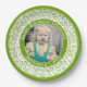 35 Your Photo Random Number Pattern Green/White Paper Plate