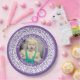 35 Your Photo Random Number Pattern Purple/White Paper Plate