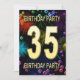Ajoutez un nom pour customiser cette invitation unique. 35e anniversaire invitation de fête avec feux d'artifice et bulles. Ajoutez vos détails à l'intérieur pour créer un invitation amusant parfait. Allumez le ciel avec ces feux d'artifice glorieux. Une invitation à une fête d'anniversaire qui a du style et beaucoup de plaisir.