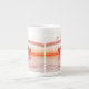 Beverage mug with my image of two coral coloured hearts floating on the water under a rainbow. Text says "35 Years".
