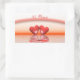 Rectangle stickers with my boldly coloured artwork of two coral hearts floating on the water under a rainbow. Text says "35 Years".