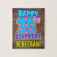 This fun birthday-themed puzzle design features the message “HAPPY 35TH BIRTHDAY,” having a colourful, vibrant, graffiti and urban street art inspired appearance, plus a customizable recipient name. The background features a pattern inspired by the look of a brick wall. A fun, editable birthday puzzle like this might be a fun way to send birthday greetings to somebody who is celebrating their thirty-fifth birthday. [~Z0000532]