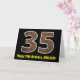 35th Birthday: Name + Faux Wood Grain Pattern "35" Card