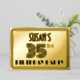 The front of this luxurious and 1920s-1930s style inspired thirty-fifth birthday celebration/party foil invitation card design features a personalized name, an intricate art deco look inspired number “35th”, the message “BIRTHDAY PARTY”, and a border pattern consisting of lines. The back features personalized details about the event, such as the date, time, place/venue, and any other information that may be useful. Stylish, luxurious, customized invitations like these might be used to invite guests to a birthday gathering being held to celebrate somebody’s 35th birthday. [~Z0000594]