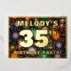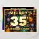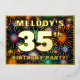 The front of this vibrant thirty-fifth birthday party/celebration foil invitation card design features an editable name, a large number “35th”, the message “BIRTHDAY PARTY!”, and a border. The background of the front has an eye-catching, colourful pattern that resembles bursting celebratory fireworks. The back features personalized details about the event, such as the date, time, place, and any other information that may be relevant. Customizable invitations like these might be a fun way to invite attendees/guests to a birthday gathering/party being held to honour somebody’s 35th birthday. [~Z0000602]