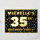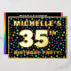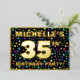 The front of this fun and vibrant thirty-fifth birthday celebration/party foil invitation card design features a customizable name, a large number “35th”, the message “BIRTHDAY PARTY!”, and a border. The background of the front has an upbeat, multicolored starfield pattern. The back features personalized details about the event, such as the date, time, venue, and any other important information. Personalized invitations like these might be a fun way to invite guests/attendees to a birthday gathering/party being held to celebrate somebody’s 35th birthday. [~Z0000600]