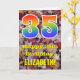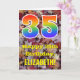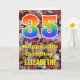 The front of this colourful, nature-inspired, and rustic birthday greeting card design features a large number "35" having a rainbow spectrum gradient inspired pattern. It also features the message "Happy 35th Birthday,", and an editable name. The front features a background depicting rustic fallen autumn leaves. The inside features a personalized birthday greeting message, or could perhaps be cleared and left blank if a message is to be written by hand instead. A birthday card like this might be a fun way to send birthday wishes to somebody who is celebrating their thirty fifth birthday. [~Z0000384]