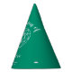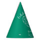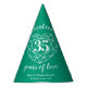 35th green emerald wedding anniversary party hats. The design features white script typography on red with your names and the words celebration of 35 years of love in script style font and a line art heart gemstone. Personalize with your names and anniversary wedding dates. The 35th and 55th wedding anniversary is associated with the gemstone green emerald and the heart symbolizes love. Other matching emerald green wedding anniversary items available. Line art and design by www.mylittleeden.com on zazzle.