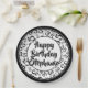 This numeric design has a black and white random number pattern with a black milestone number 35 repeated in varied sizes and angles. There is a white circle in the centre for your text and black-and-white rings around the rim.