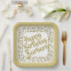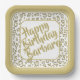 This numeric design has a gold and white random number pattern with a gold milestone number 35 repeated in varied sizes and angles. There is a white area in the centre for your text and gold-and-white squares around the rim.
