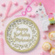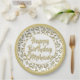 This numeric design has a gold and white random number pattern with a gold milestone number 35 repeated in varied sizes and angles. There is a white circle in the centre for your text and gold-and-white rings around the rim.