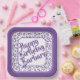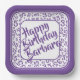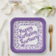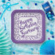 This numeric design has a purple and white random number pattern with a purple milestone number 35 repeated in varied sizes and angles. There is a white area in the centre for your text and purple-and-white squares around the rim.